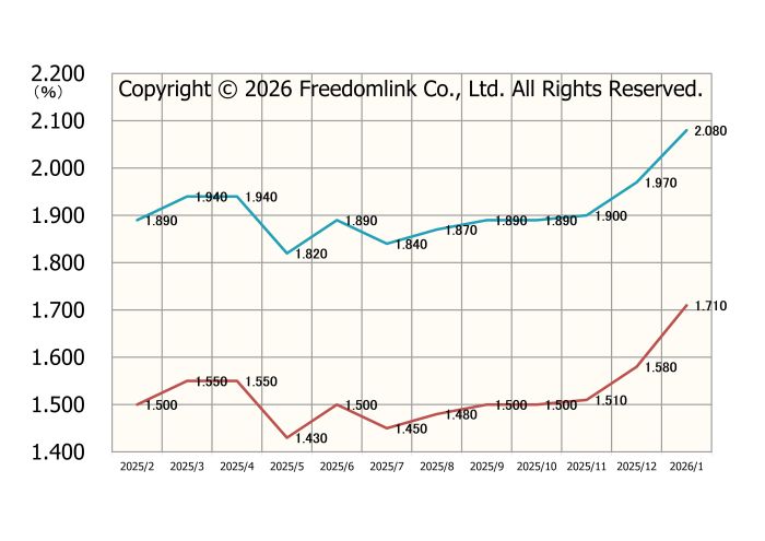 「フラット35」最低金利の推移