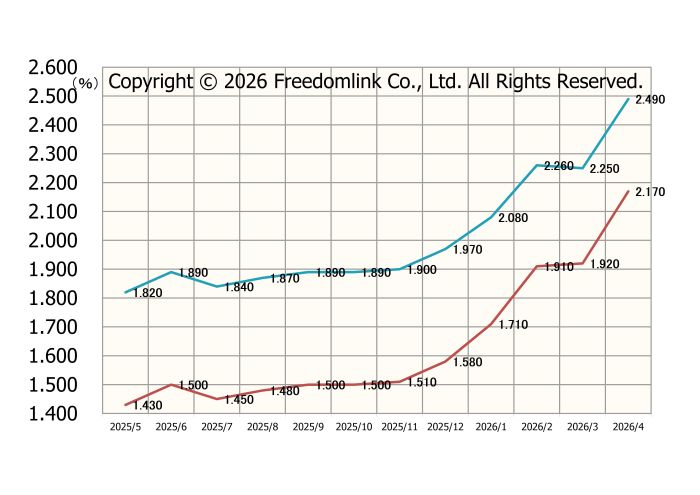 フラット35最新の金利情報 http://www.flat35.com/kinri/index.php/rates/top